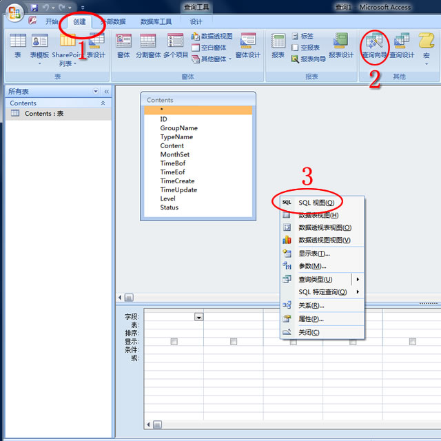 1. 在“创建”选项卡中,单击“其他”组中的“查询设计”。
